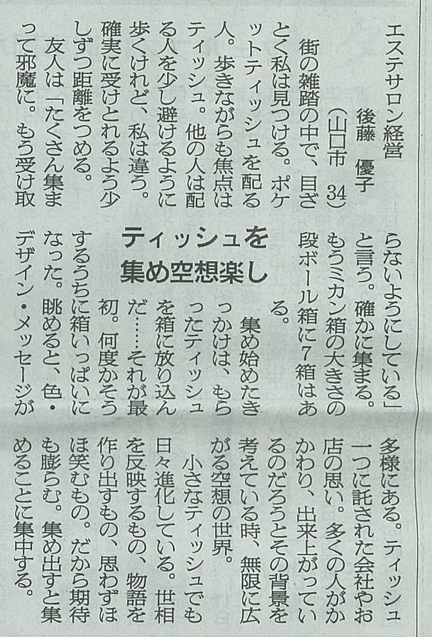 小さなティッシュでも日々進化している。世相を反映するもの、物語を作り出すもの、思わずほほえむもの。だから期待も膨らむ。
